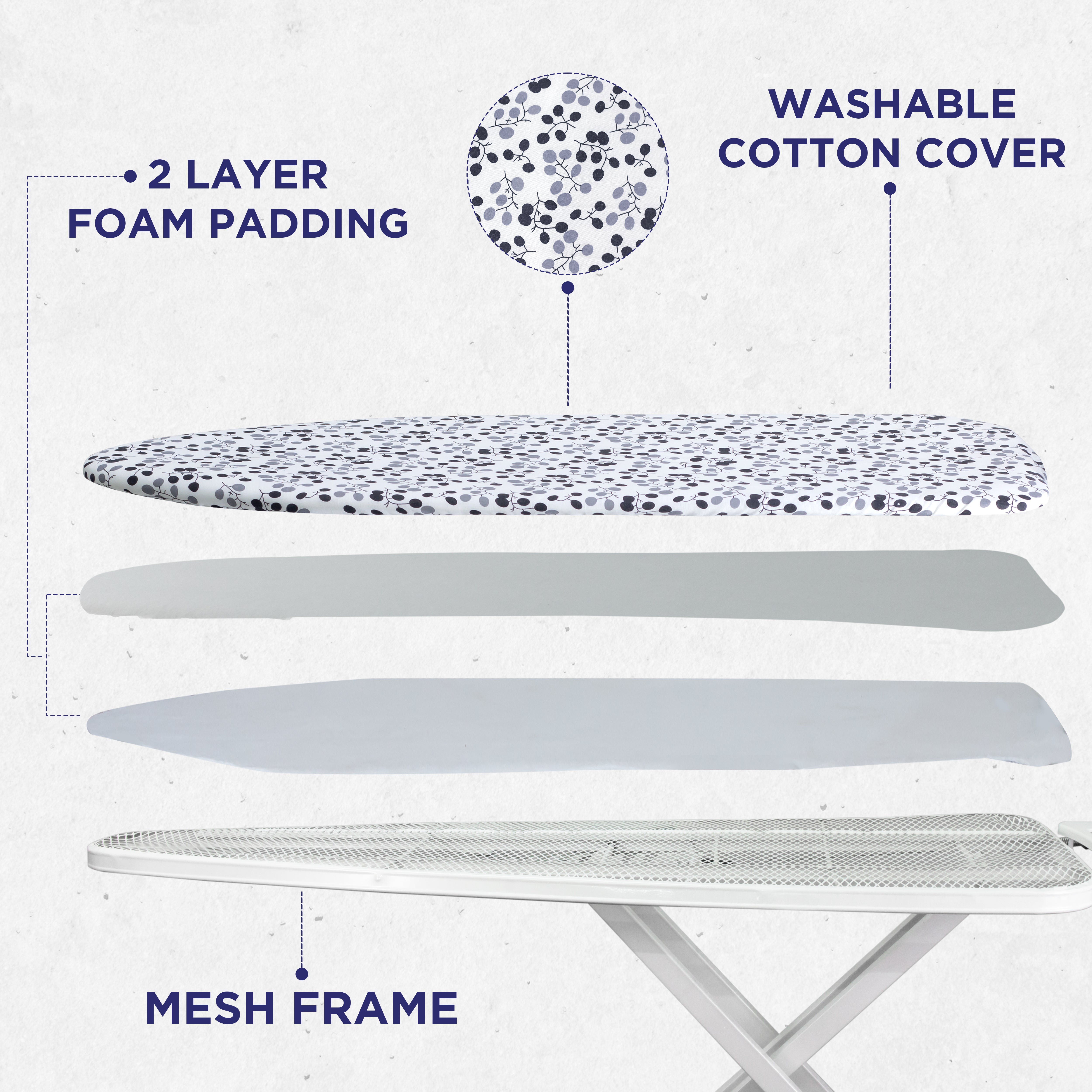 - Built-In Iron Holder: Convenient iron holder to safely rest your iron between uses, keeping your workspace organized.