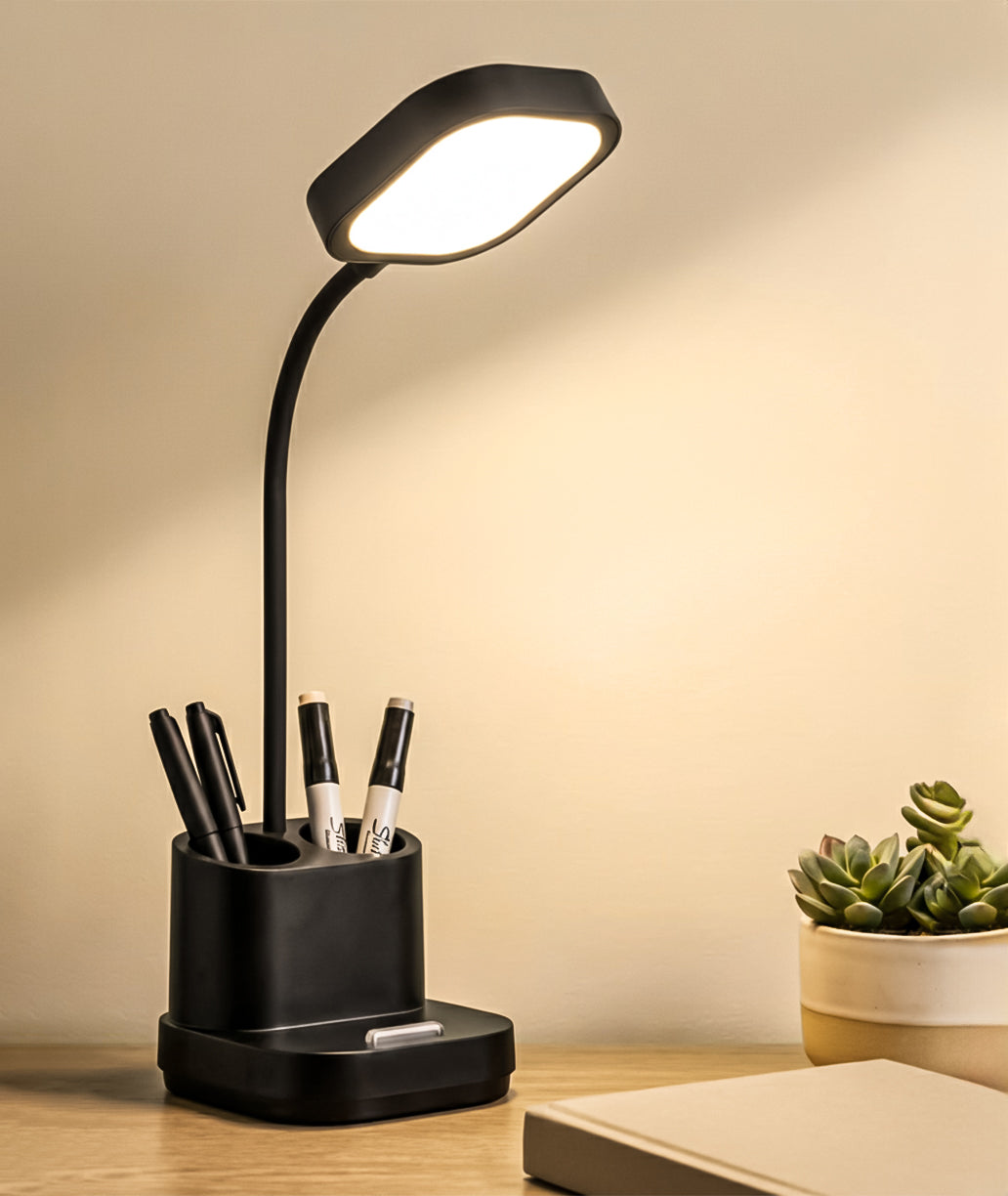 - Pen Holder: Keep your workspace organized with a convenient built-in pen holder. Store pens, pencils, markers, and other small desk essentials right next to your lamp.