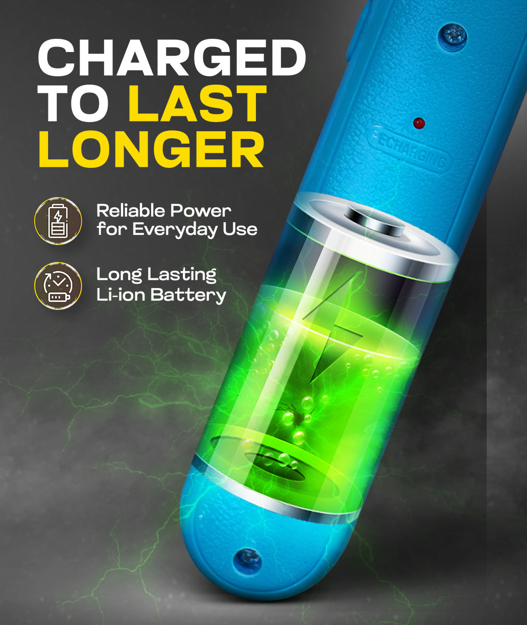 - Convenient Built-In Charging Plug: No need for separate cables! Simply plug the bat directly into any wall socket using the inbuilt charger for effortless recharging.