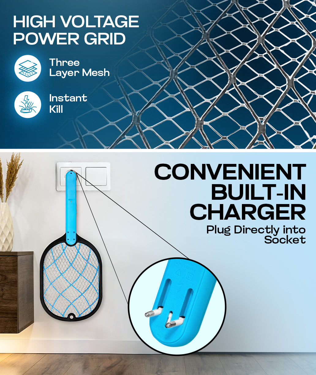 - Powerful High Voltage Mesh – Instant Kill: 3-layer protective grid delivers high-voltage electric shock for quick mosquito & fly elimination. Safe for home, kitchen & outdoor use.